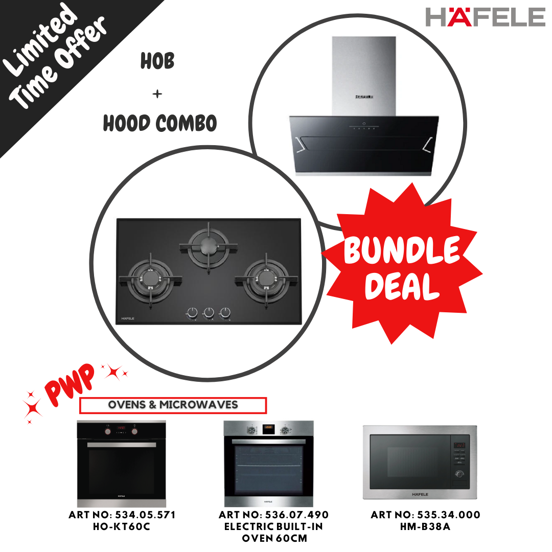 HÄFELE Bundle E 538.61.841: 90cm Semi Integrated Hood 538.88.133 + 86cm 3 Burner Gas Hob (PUB) 538.01.947 + 60cm Multifunction Oven 536.07.490